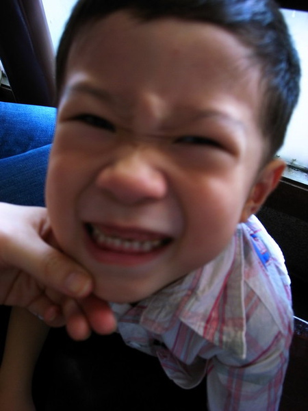 ((佑佑最近門牙好像是乳牙要換牙吧,全蛀光又快掉光,好好笑喲.................................))