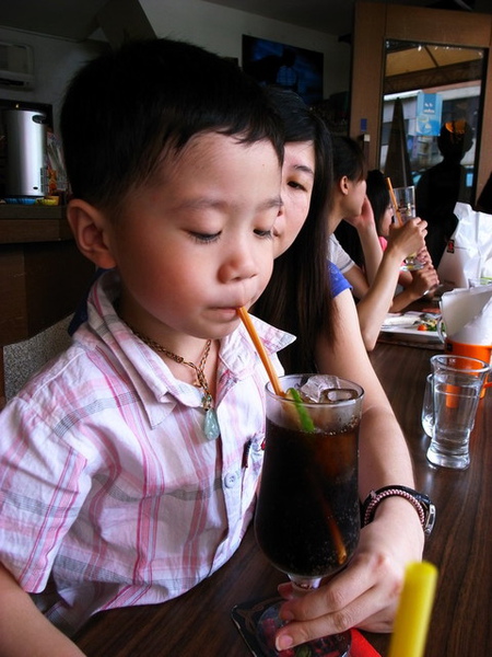 對了,2F有三個位置耶,剛好被三個阿豆仔坐去了,但下來拿飲料時,他們直喊it's so hot!!!